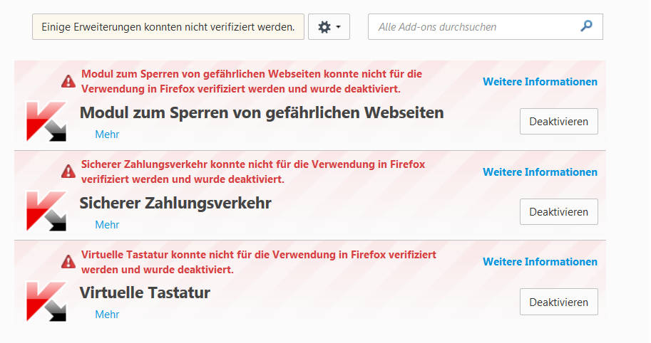 Wenn ich unter Add-ons gucke, sehe ich das beigefügte Bild. Ich verstehe das leider nicht. Muss ich etwas machen oder ist das so in Ordnung :-??