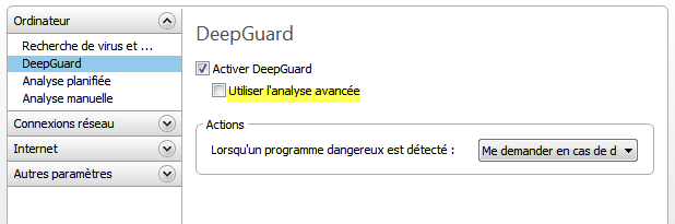 F-Secure --> DeepGuard --> Erweitert (Hackchen entfernen)