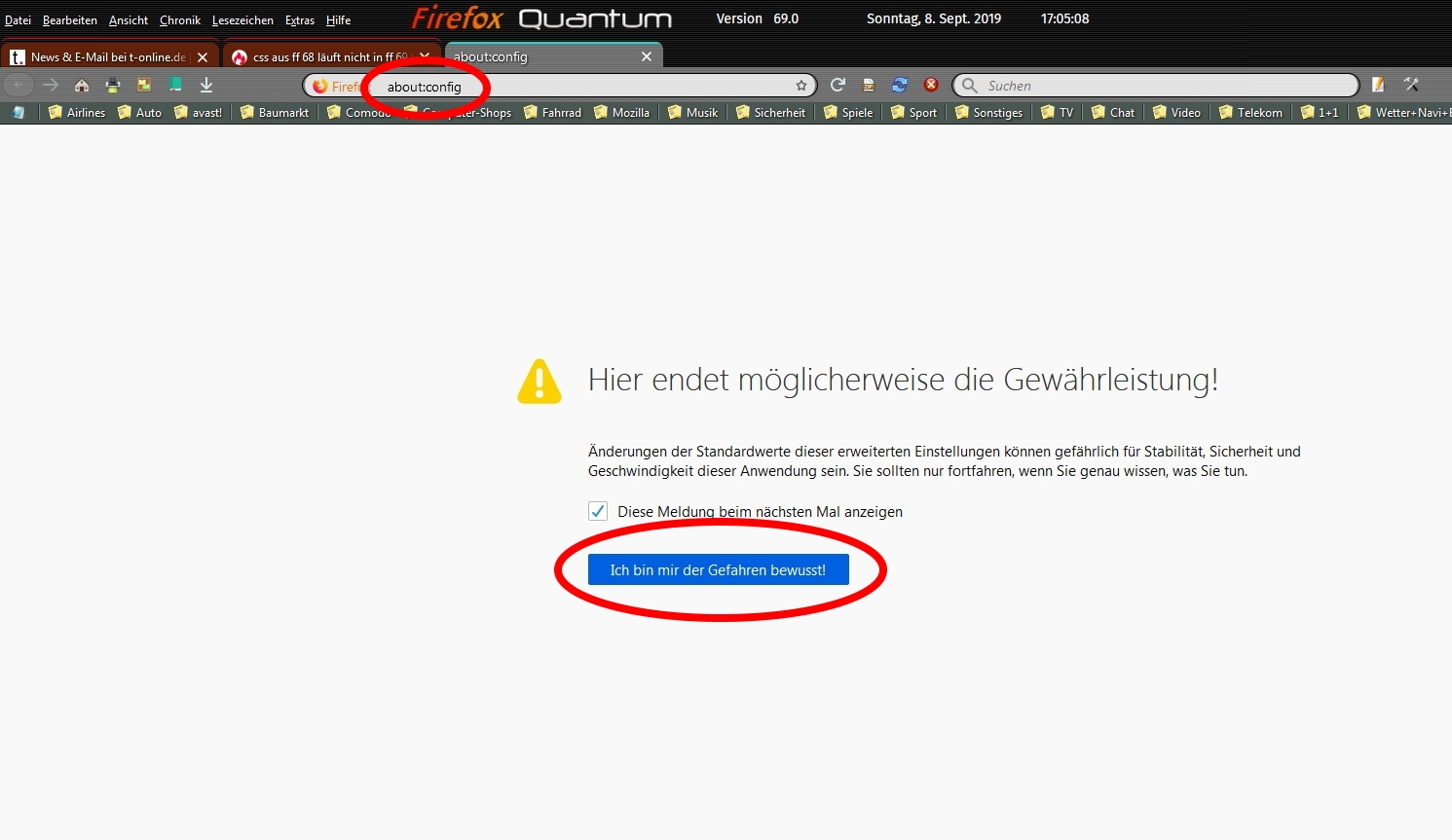 Als ich about:config eingegeben habe, Enter vergessen.