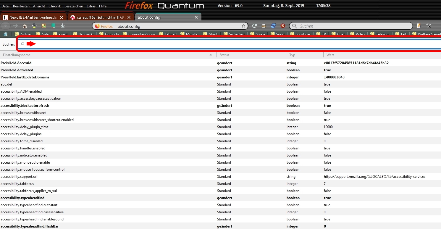wenn ich about:config eingebe erscheint der zu suchende Eintrag überhaut nicht.