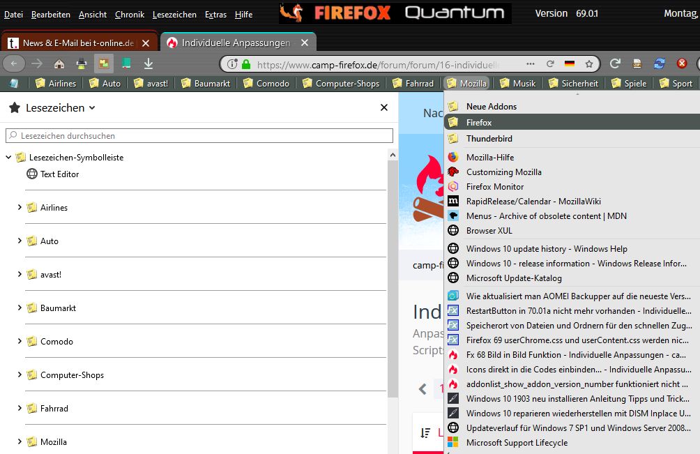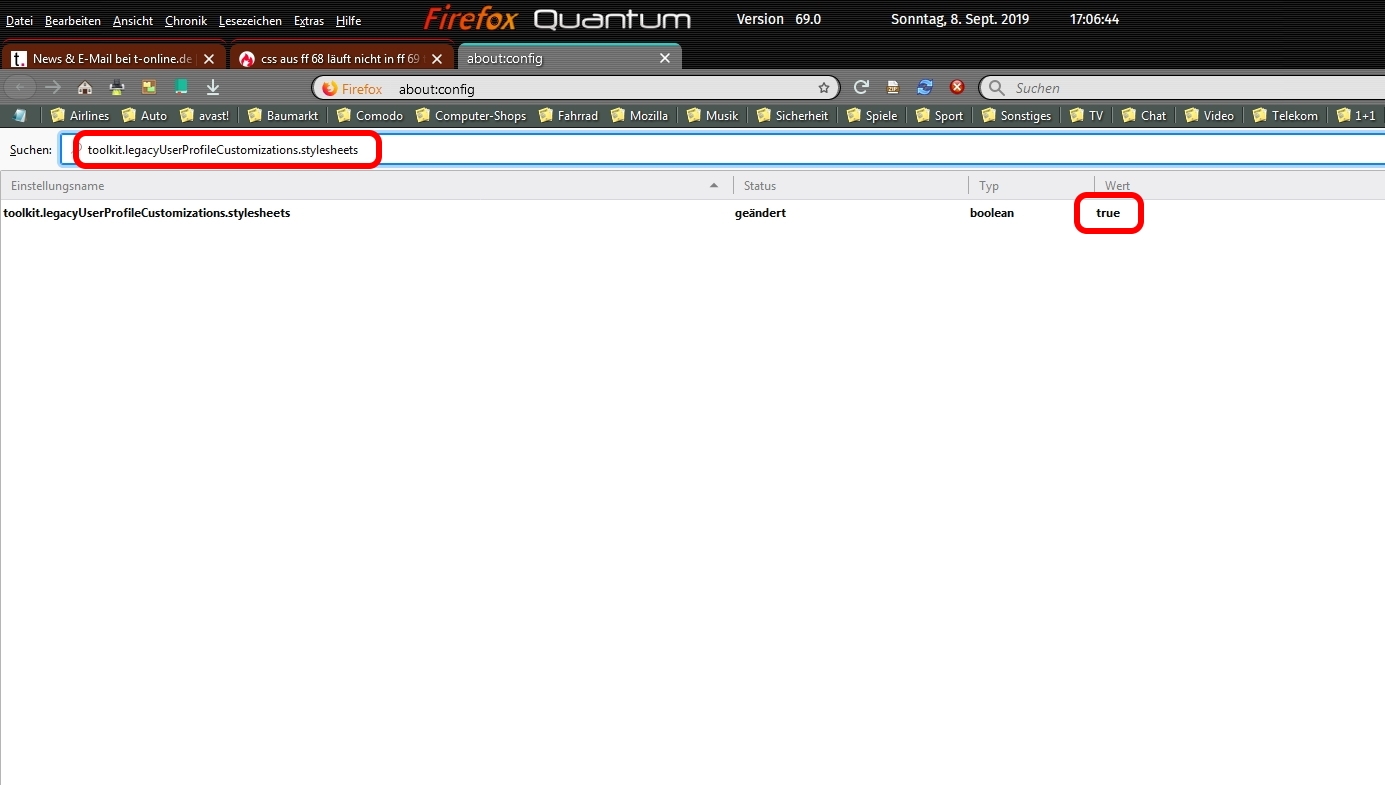 Auch wenn es etwas doppelgemoppelt und unorganisiert ausschaut, aber allein mit dem Eintrag .bookmark-item[container],treechildren::-moz-tree-image(container) {fill: orange !important;} in der userChrome.css sollte er doch eigentlich schon orange Ordner haben (!?) denn der Code funktioniert ja. Wenn er sie nicht hat stimmt ja schon mal was nicht, da wird es mit dem CSS-Ordner und dem @import-Befehl wahrscheinlich ja auch nicht wirklich funktionieren, denke ich mir ![]()