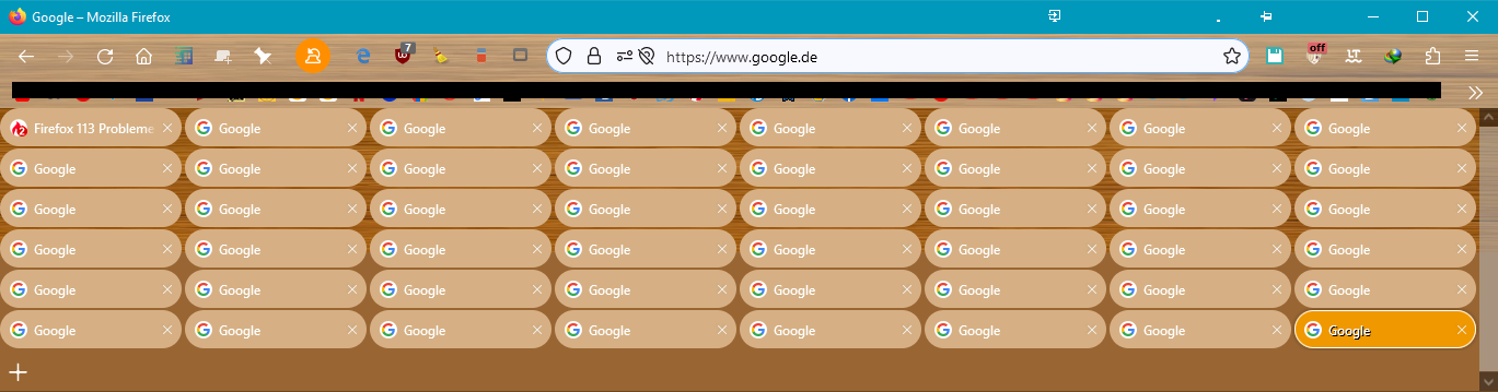 Ich habe mein Fenster vom Firefox so klein gestellt, das genau 8 TAB nebeneinander passen und danach kommt eine neue Zeile mit wieder 8 TABs.