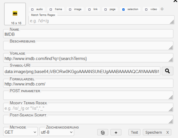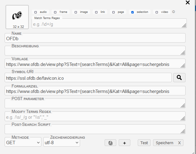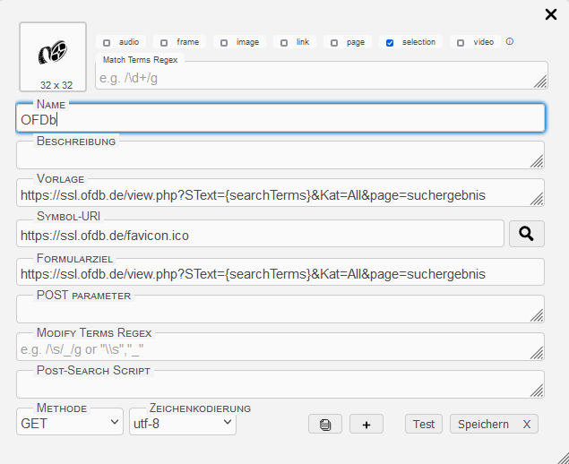 Das Formular für "OFDb" was übrigens leider nicht mehr funktioniert, sieht so aus (siehe Foto):