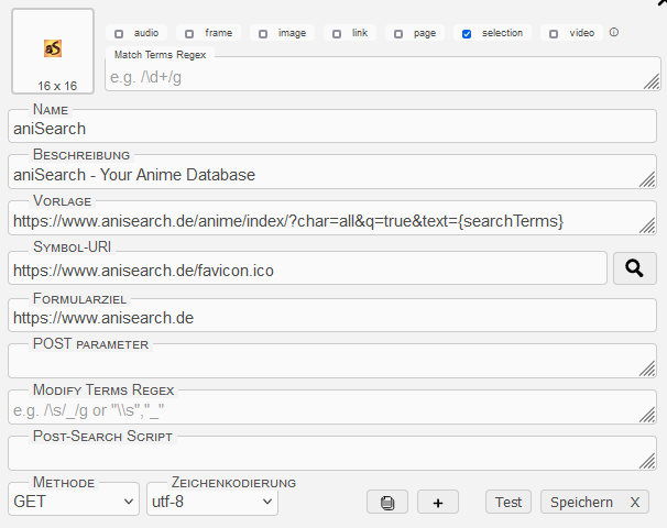 ===>>> https://addons.mozilla.org/de/firefox/add…tsearch-web-ext <<<====Ich wollte euch darum bitten, mir dabei zu helfen, die korrekten Suchparameter zu finden, damit die Suchmaschine wieder richtig geht, denn aktuell komme ich so nur noch zur Startseite und es sucht nichts mehr über die Plugin.