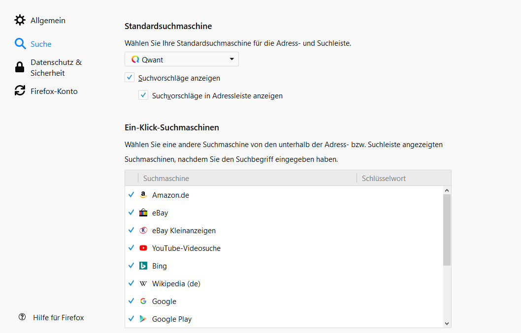Stimmt auch wieder, wobei einige meiner Suchen seit Firefox 57 sowieso nicht mehr funktionieren wollen, dadurch wurde es bei mir recht übersichtlich (12)