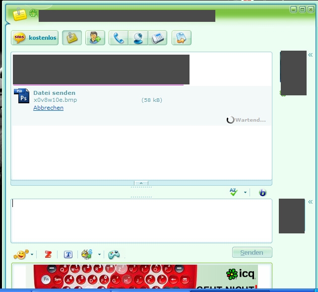 Ich konnte mal Bilder einfach von Firefox ins ICQ ziehen und schicken, beim empfänger wurden sie auch direkt als Bild im ICQ angezeigt. Wenn ich das heute mache sieht es nur so aus (Anhang).Ich weis nicht mehr ob es ein Add-On war der dies möglich machte oder nicht. Weiß da jemand mehr?