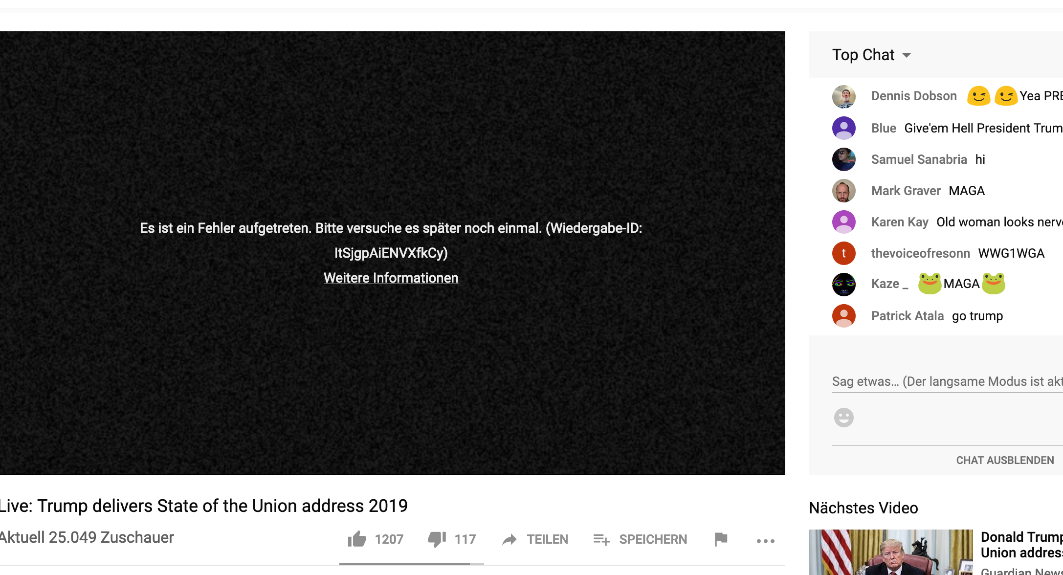 Die Youtube Videos starten bei mir ganz normal. Aber nach einer Weile (immer so nach ca 5-10 Minuten) stoppt das Video und diese Fehlermeldung erscheint: