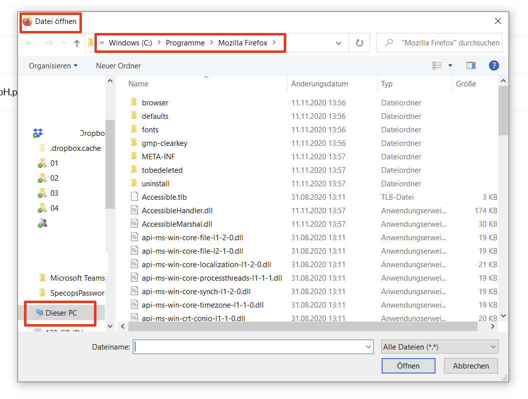 Hinweis: Falls es Ihnen nicht möglich ist, Firefox zu starten oder mit ihm zu arbeiten, folgen Sie der Anleitung Mein Profil finden, ohne Firefox zu starten.
