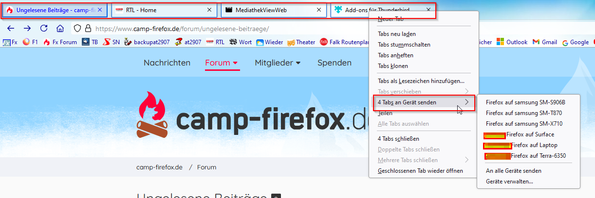 Die Erweiterung Bookmarks Organizer zeigt die Anzahl der Lesezeichen an.