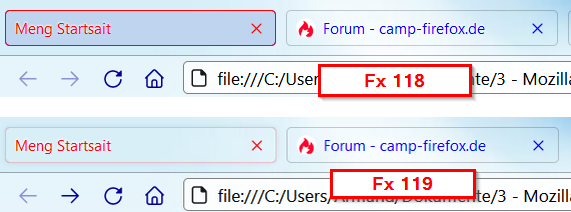 Seit dem Update auf Fx 119 wird die Hintergrundfarbe des aktives Tabs nicht mehr angezeigt.