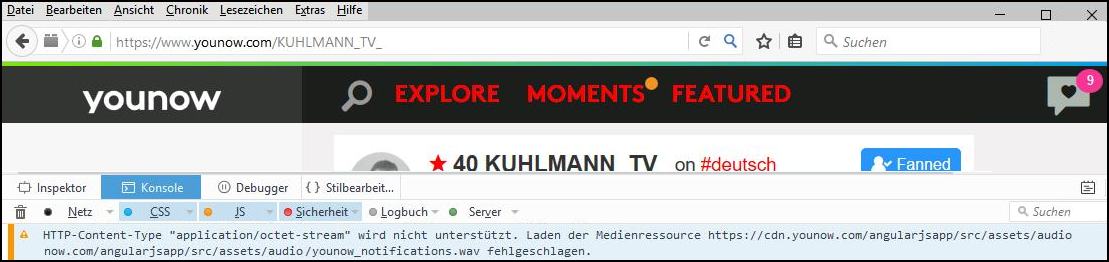 Momentan ist in der Younow.com -Seite folgender Html-Code enthalten. Der Firefoxbrowser spielt