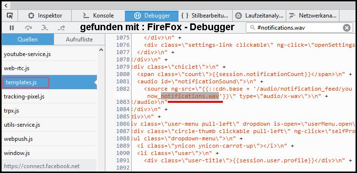 Die "notifications.wav" -Datei ist mit dem Firefox-"Debugger" (Strg + Umschalt + S)
