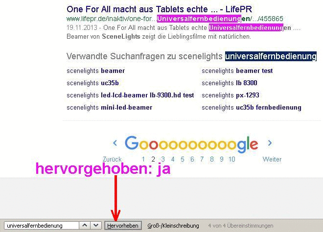 hebt man bei einer Firefox-Wortsuche das gesuchte Wort