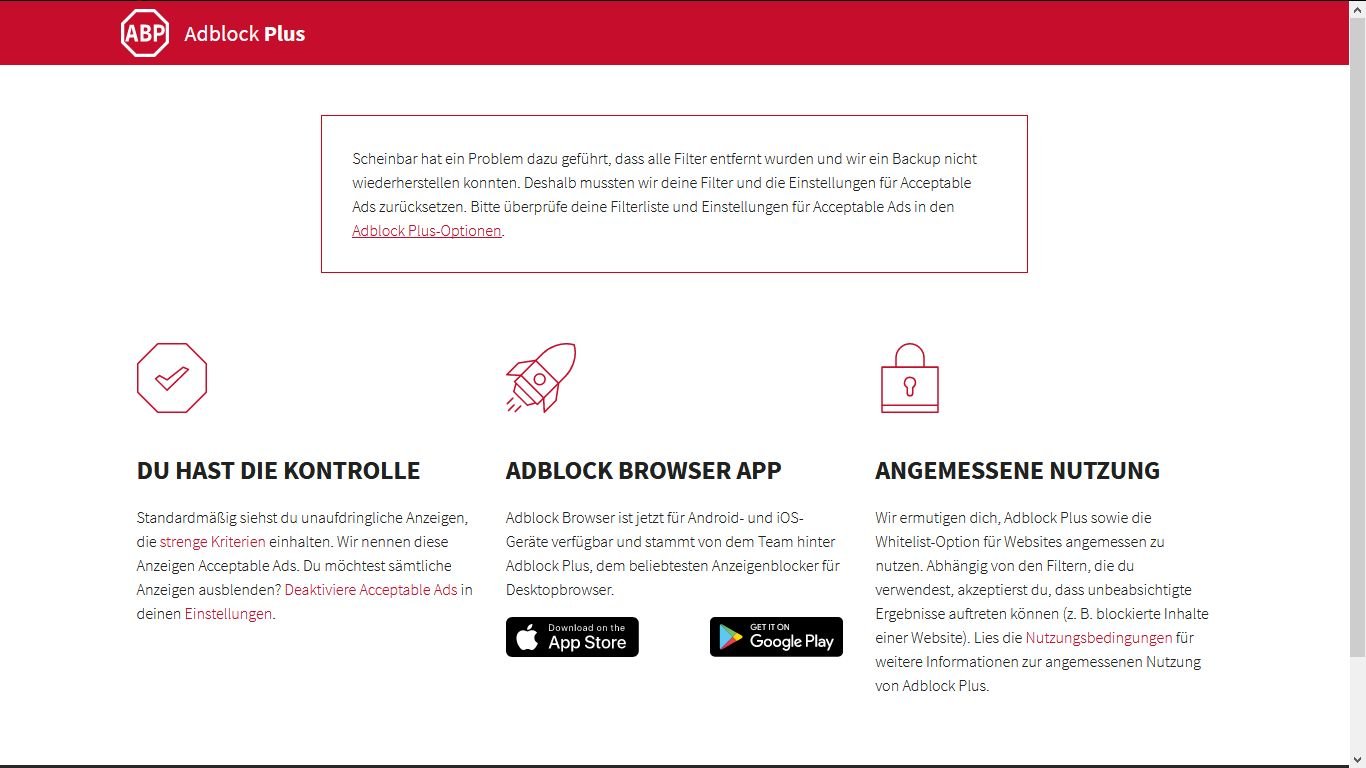 Neuerdings bekomme ich jeden Tag beim Öffnen von Firefox eine Fehlermeldung von Adblock plus, siehe Anhang. Was läuft da falsch?