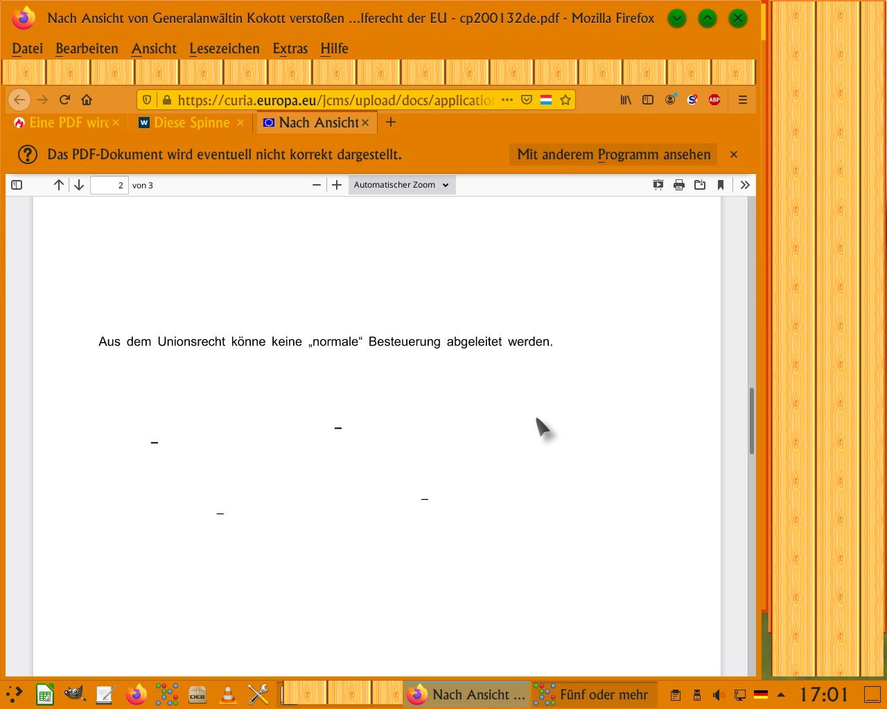Diese PDF, also die vom EuGH, wird im abgesicherten Modus genauso unvollständig dargestellt, wie im normalen Modus.
