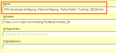 - tippe in das Suchfeld einen Begriff für das zu suchende Lesezeichen,