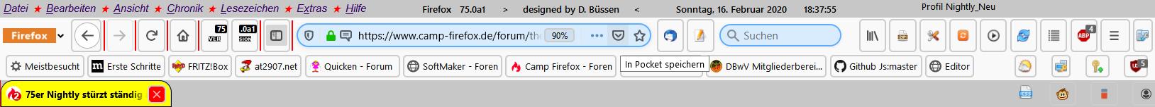 Nach Update und Neustart mit Original-Profil sah mein Nightly so aus: