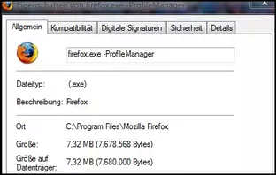Betrachte ich den Screenshot in diesem Beitrag wird deutlich, daß es sich nicht um die Eigenschaften einer Verknüpfung handelt, sondern um die Eigenschaften von firefox.exe selber. Mit der gezeigten Änderung hast du effektiv den Firefox umbenannt (du hättest genauso gut Rumpelstilzchen schreiben können), aber keineswegs einen Aufruf des Profilmanagers eingerichtet.