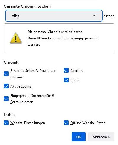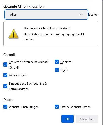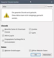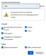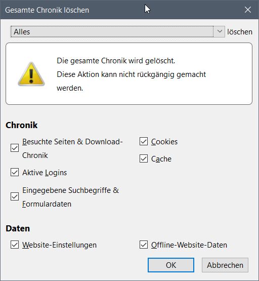 Falls das nicht mehr geht, gibt es ein Tastaturkürzel wie man die gesamte Chronik ohne Einblendung von dem Fenster löschen kann?