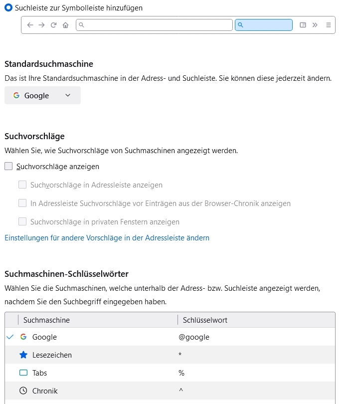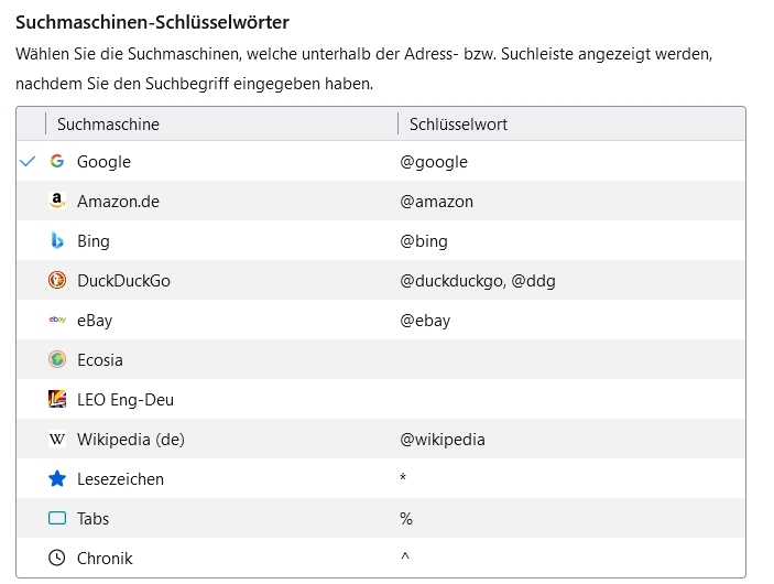 Hier mal die Sucheinstellung wie ich sie aktuell in Firefox eingerichtet habe