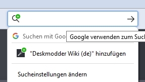mir ist auf verschiedenen Seiten schon aufgefallen das Firefox bei der Suche immer mal wieder "hinzufügen" der besuchten Seite mit einblendet, das sind die unterschiedlichsten Webseiten, in dem Fall ist es jetzt die Seite von Deskomodder.