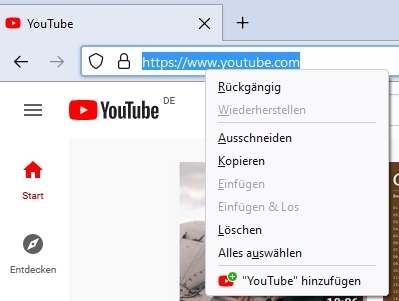 mir ist aufgefallen das bei Eingabe in der Adresszeile "hinzufügen" erscheint, wie z.B. auf Youtube.