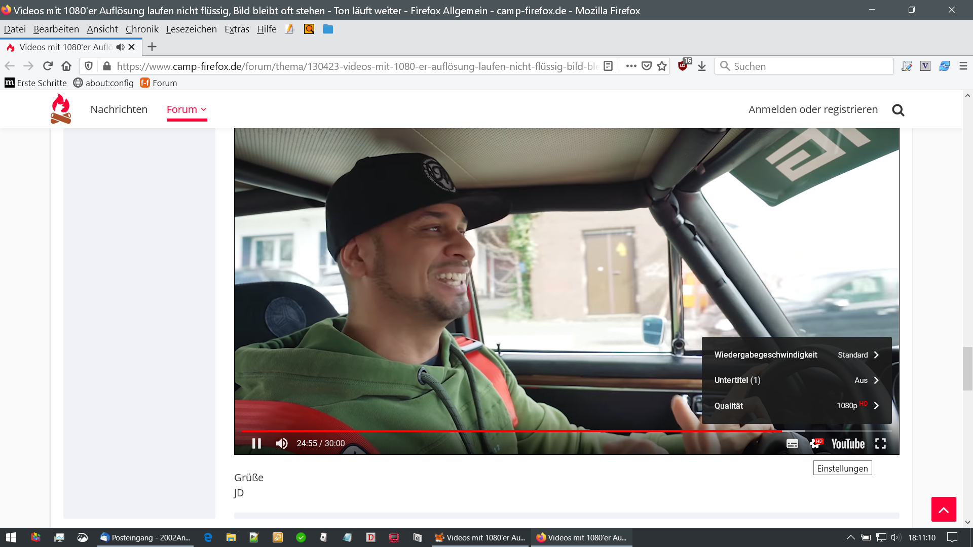 Ja, Danke - hatte Firefox nicht geschlossen. Es ist auf alle Fälle besser geworden. Es ist jetzt so das wenn man das Video startet, oder auch "vorspult" bzw. im Video an eine andere Stelle springt das Video dann noch hängt, also wie vorher, aber es im laufenden Betrieb keine "Ruckler" mehr gibt.