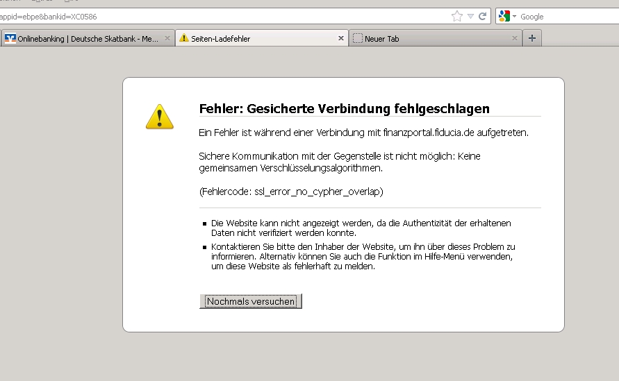 Danke, der letzte Tipp hat geholfen. Ich hatte zwar genau mit der Fehlermeldung vorher im Forum gesucht, aber kein Ergebnis erhalten. :-((