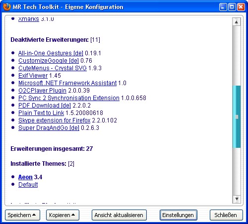 Das sind alle bei mir deaktivierte Erweiterungen.