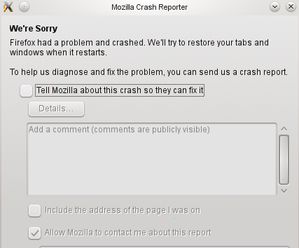 Firefox 17 verabschiedet sich nach dem Beenden immer mit einer Absturzmeldung "We are sorry ... ".