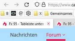 Dabei schiebt es aber die graue Hintergrundleiste der Tabs nach oben, die überlagert z.T. schon die Bookmarks.