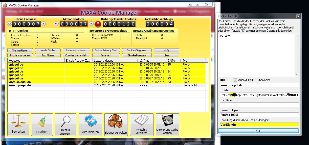 Die Firefox DOM Cookies werden immer noch gesetzt wie zuvor ![]()
