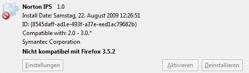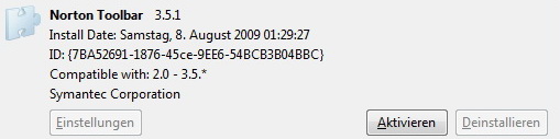 Die jetzt nur noch eine deaktivierte Erweiterung gehört zu Norton Internet Security 2009 und ist im Moment noch nicht mit FF 3.5.2 kompatibel.