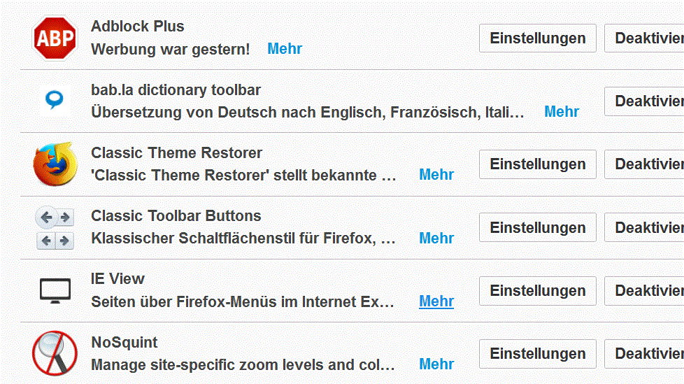 da komm ich auf den Add-ons-Manager, waren da nicht immer alle Add-ons aufgeführt, oder irre ich?