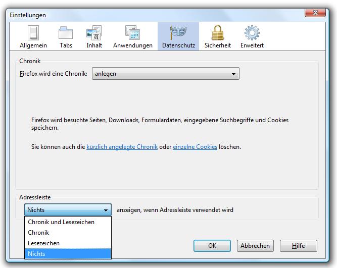 Ich habe mal meine Chronik gelöscht und festgestellt, dass nun bei der obigen Einstellung "Chronik und Lesezeichen" zwar auch die Anzeige kommt, aber der Suchvorgang wesentlich schneller geht. Es kommt also darauf an, wie viele Dateien sich in der Chronik befinden.