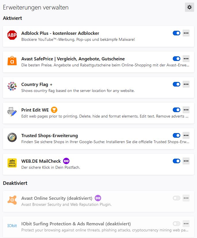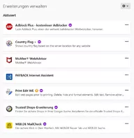 Lösche also die user.js. Gib dann about:config in die Adressleiste, bestätige die eventuell erscheinende Warnung und nimm dir dann deinen Beitrag #13 zu Hilfe, wo du den Inhalt der user.js eingefügt hast. Suche jetzt in about:config jede einzelne Einstellung (in user.js zwischen den Anführungszeichen innerhalb der runden Klammern) und schaue dann bei der entsprechenden Einstellung ganz rechts nach den Symbolen. Es gibt bei manchen Einstellungen zwei Symbole; ist das hintere ein gebogener Pfeil, klicke darauf, dann wird der Wert auf den Standardwert zurückgesetzt. Gibt es dieses Pfeilsymbol nicht, stattdessen ein Papierkorbsymbol, dann klicke darauf. Die entsprechende Einstellung wurde irgendwann mal von der user.js angelegt. Per Klick auf das Papierkorbsymbol wird die Einstellung entfernt.