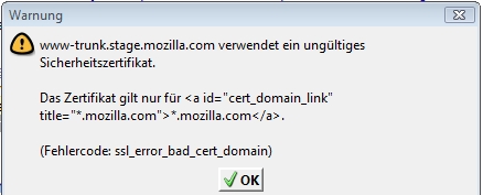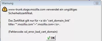 aufrufe immer die Meldung bekommeZitatwww-trunk.stage.mozilla.com verwendet ein ungültiges Zertifikat