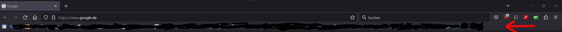 Anbei erneut der Screenshot einem roten Pfeil, der auf die Leiste, die bei mir in FF als Lesezeichensymbolleiste bezeichnet wird, verweist. Die kleinen Webseiten-Icons (= Favicons) wurden bis vor wenigen Tagen nicht vollständig angezeigt. Es hätten 60 auf der gesamten Bildschirmbreite sein müssen, die ich dort abgelegt habe, auch dort, wo sich der rote Pfeile befindet, liegen sie sonst. Manchmal erschienen nur 5, manchmal deutlich mehr, aber eben nicht alle, die ich dort platziert habe.