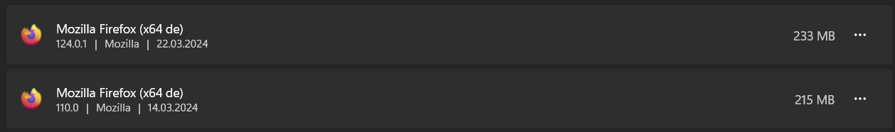 kürzlich ist mir beim Durchforsten der deinstallierbaren Programme aufgefallen, dass es zwei Firefox-Installationen auf meinem Win 11 - Rechner gibt: