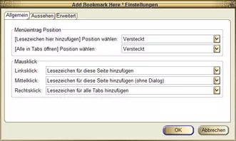 Gruß gammaburstIch habe eine deutsche Version von "Bookmark here" - da sieht das so aus wie auf dem Bild - meinst Du das? Wenn ich es so anklicke, nimmt Firefox trotzdem nicht den letzten Speicherplatz, sondern speichert wie immer im Lesezeichen-Menü. Oder gibt es die benannte (englische) Einstellung an anderer Stelle?