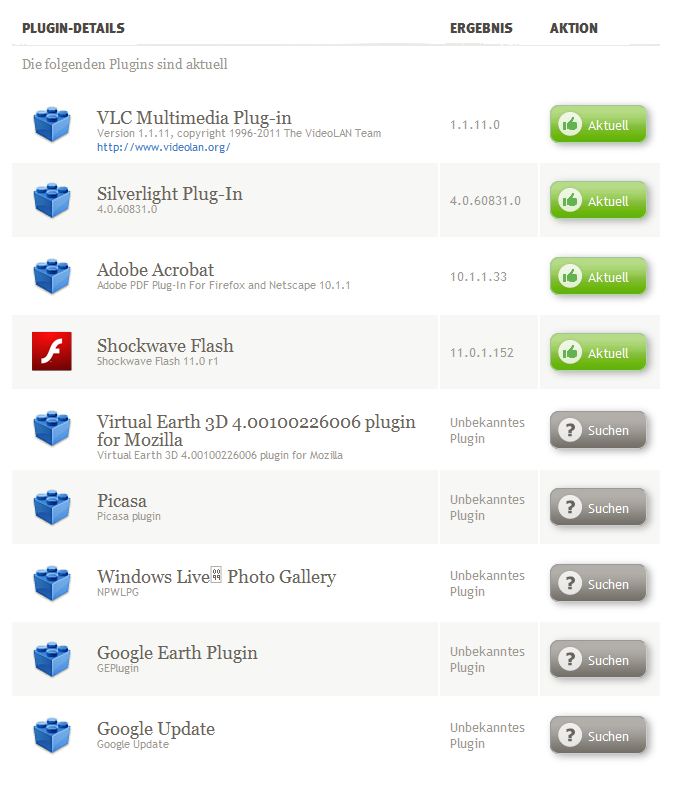 Bei 5 Plugins kommt "Unbekanntes Plagin"