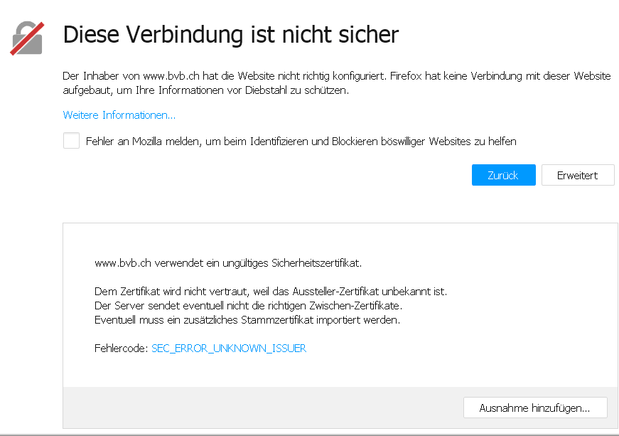 "Diese Verbindung ist nicht sicher"Mit der Version FF 57 Hatte ich keine Probleme.