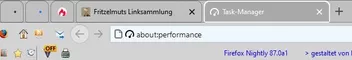 Im Menü "Hilfe" vom Nightly taucht seit heute (ggf. auch schon länger) der Eintrag Task Manager auf.