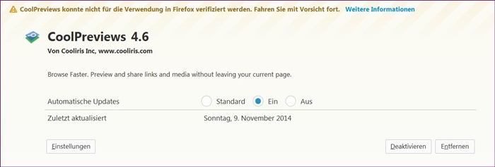 wenn ich das alte Add-on entferne und NoSquint von der Liste installiere?Bei NoSquint wird ja auch keine Warnung angezeigt, darum dachte ich das ist so ok. > Irrtum?