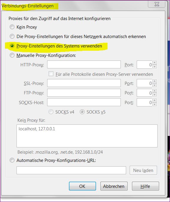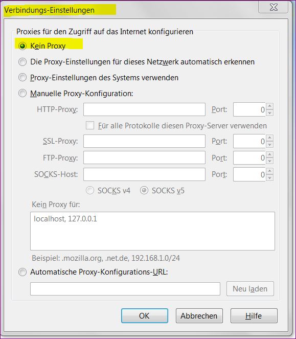 Bei "Kein Proxy" läuft es bei mir genauso ab, wie du es beschrieben hast.