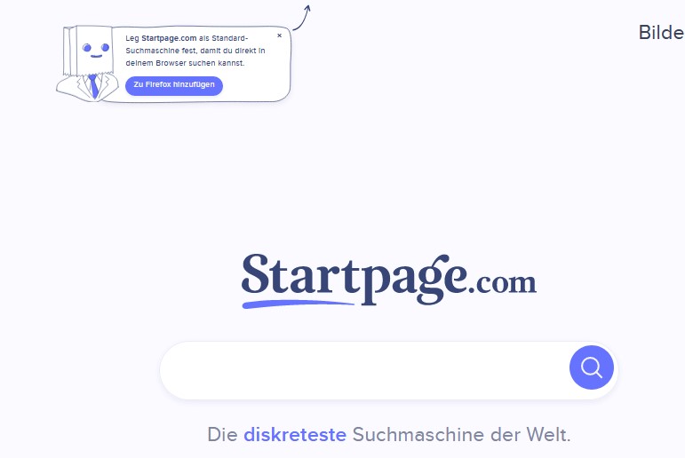 Als Standardsuchmaschine ist bei mir Startpage.com eingetragen.