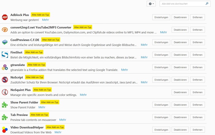 Das sind meine Add-ons, mit denen ich gut klarkomme.