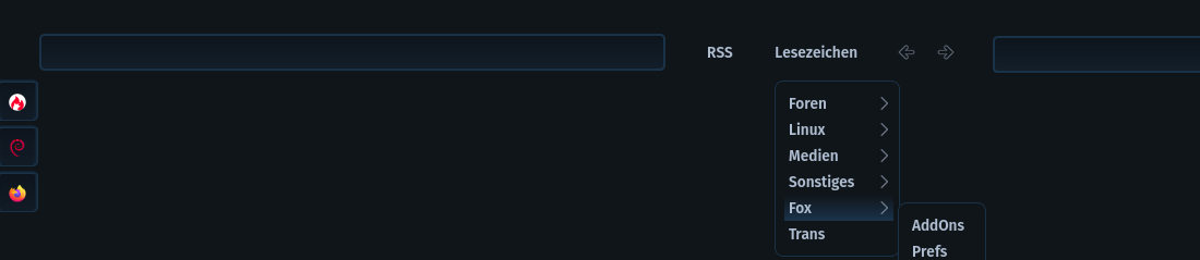 ZitatWas vielleicht auch Sinn machen würde - bei ausgeblendeter Lesezeichenleiste einen Button zum Öffnen von nur einem Lesezeichenordner zu haben ; z.B. Weitere Lesezeichen , oder noch besser einem anderen festgelegten Ordner .