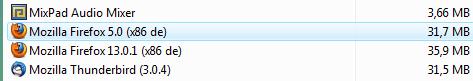 Firefox 5.0 war auch Firefox 13.0.1 verschwunden.