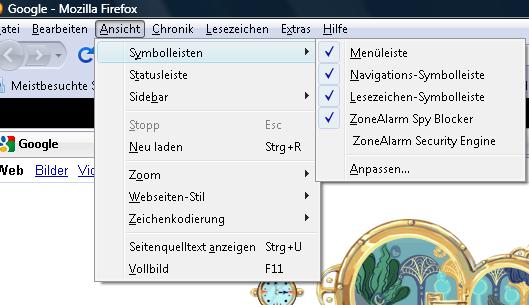 Bei Deaktivierung von "ZoneAlarm Spy Blocker" ist der Balken weg.